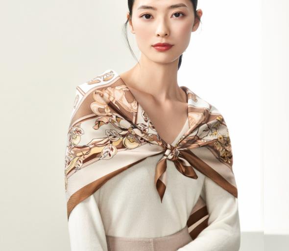 大丝巾最常见的围法,就是披肩式,这种方式非常常见而且百搭简单适合多种场合。