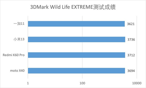 可以看到,这四款旗舰机型的3DMark Wild Life EXTREME跑分测试成绩均在3700分左右,整体性能表现差异并不大,均达到了当下旗舰手机的超一流水准。