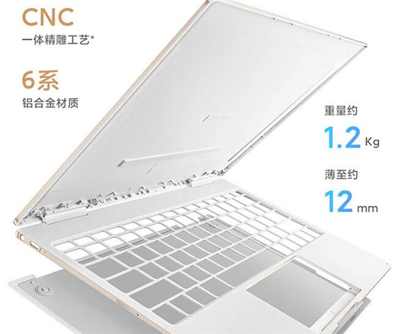 小米笔记本 Air 13 大胆的选择了纯白色,辅以金色的 CNC 切割边框,配色大胆前卫,更加突出个性,在一众翻转本中也属于非常独特的配色组合。白色电泳工艺凸显质感,给人干净、纯粹的印象,金色包边提升气质,更显轻薄。