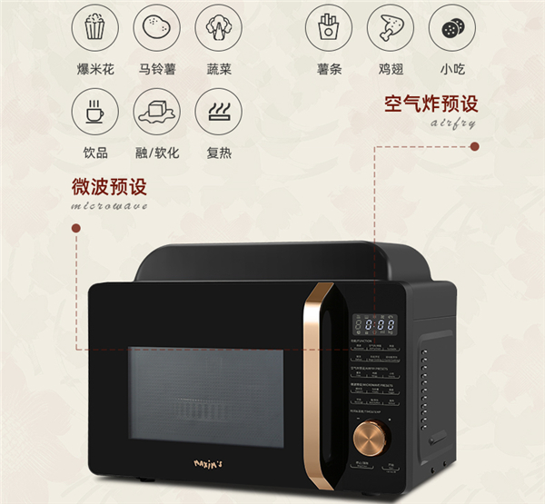 总结,马克西姆卢瓦尔空气炸微波炉功能高度贴合普通中式家庭,将微波炉和空气炸锅功能叠加,达到了1+1>3的效果,同时能够进行2段组合烹饪,即有微波穿透深入食物内部加热的快速熟透能力,也具备空炸无死角覆盖烹饪的优点;再加上轻奢外观造型,直接可以将家里原有的空气炸锅和微波炉给扔了,有一台就完全足够了。