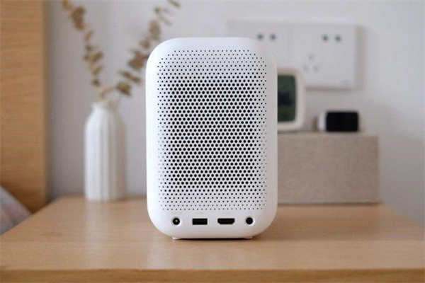 Redmi投影仪采用经典的黑白熊猫配色,外观简约美观;前面板是磨砂黑材质,非常有质感;整机做工非常不错,并且非常小巧,一只手就可以轻松拿捏,平时移动起来很方便。