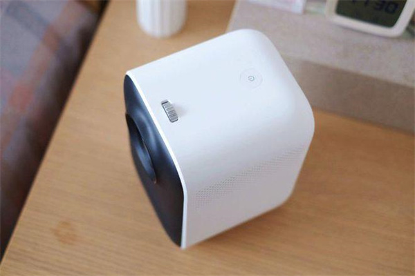 投影仪顶部设计的也很简约,就一个对焦滚轮加一个电源键;短按电源键即可开机,开机后顺时针或逆时针拨动滚轮就可以调节对焦距离;操作非常方便,家里的老人或小孩也可以轻松学会。