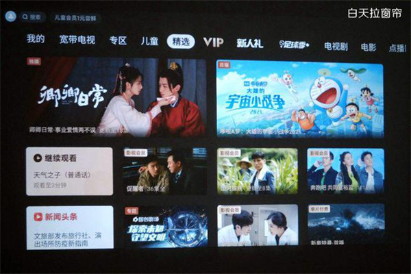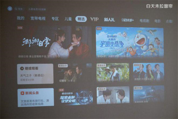影视资源内容方面也完全不用担心,Redmi投影仪自带了和小米电视一样的MIUI TV系统,等于免费拥有了一个小米电视盒子,并且还可以用遥控器语音搜索影视资源,想看什么一句话就可以解决,非常的方便。