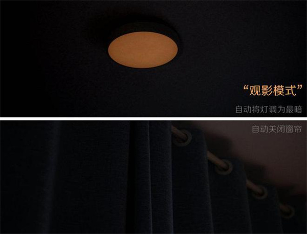 你还可以设置智能联动功能,实现一句话就可以轻松看投影。例如当你对Redmi投影仪说:“观影模式”,就会自动执行你之前设置好的联动,自动将灯调为最暗、同时自动关闭窗帘,为你提供最舒适的观影体验。