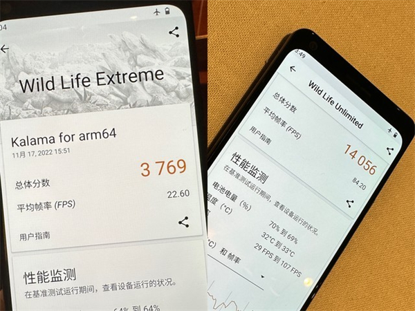在图形处理方面,除了以上几项测试外,笔者还测试了3D Mark。其中3D Mark WildLife Unlimited平均帧率为84.20 FPS;3D Mark WildLife Extreme Unlimited平均帧率为22.60 FPS,Adreno 740 GPU没啥说的,依旧很强势,不过和去年相比,新晋挑战者天玑9200同样不弱。所以,未来几个月谁才是游戏神U,还真的很难说。