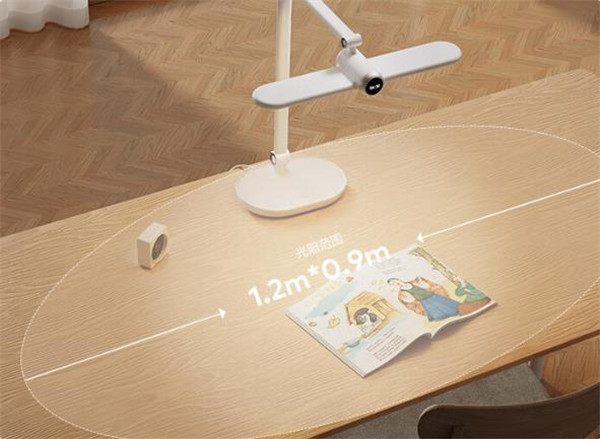它的亮度中心照度可达1950Lux,照度均匀度1.7,可以保证1.2m*0.9m的光照范围,符合国标AA级照度,色温可以在3000K-5000K之内21档调节,实际表现非常舒适,读书、笔记本办公看久不累。