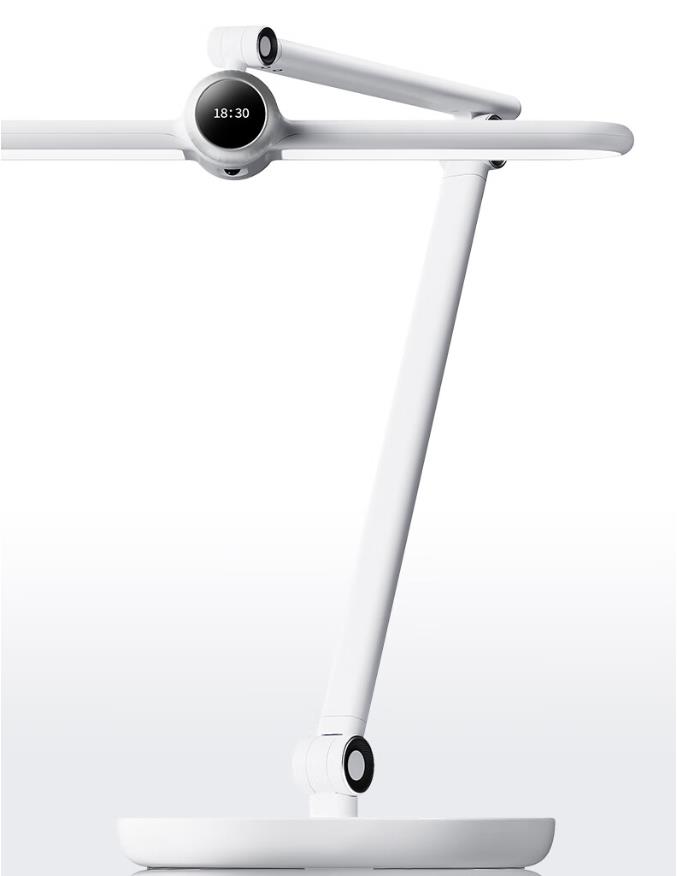 魅族liproT22Z1智能感应灯采用了悬浮式的飞翼设计,控制旋钮集中在灯头部位,配备有 OLED 屏幕可以显示时间、计时器、亮度和色温等参数并进行调节。