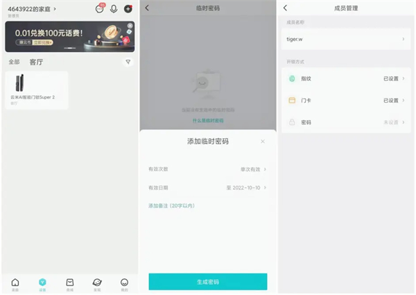 除了常用了指纹解锁的方式,还提供了密码开锁、临时密码、门卡开锁、钥匙开锁的大解锁方式。满足了不同场景的使用需求。云米AI智能门锁Super 2还拥有4200+2000毫安双电池,可以保证猫眼及对讲续航2个月,锁控续航4-6个月。两部分独立的供电,更加长久的续航,独立的供电模式,可以提供双重的保障。但是如果还是忘记充电了,门锁上还提供了type-c应急充电口,可以快速临时供电,实现开门。同时机械钥匙开锁,也为你多了一种选择方式。针对陌生访客的临时密码,可以在APP上远程生成,方便访客开门。更加丰富的开锁方式,可以方便不同使用者,如家里有老人,不适应指纹开锁,就可以使用门卡开锁。