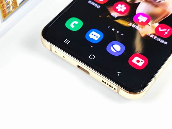除此之外,该机采用了经典高贵的黑金配色,在神秘沉稳的黑色背板与香槟金色边框的奢华质感下,衬托出宝石状方格花纹雕琢的金色铰链盖的璀璨光彩,保护内部结构的同时,勾勒出简洁流畅的线条之美。再加上背部下方金色的「心系天下」背板标识,尊贵感油然而生。