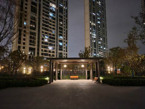 而在更考验相机实力的夜拍场景,该机呈现的画面纯净通透,没有明显噪点,色彩还原很准确,高光压制较为出色,没有明显的光晕,对夜空的呈现也非常完美,没有发生因强行拉高画面亮度而导致夜空发白的尴尬现象。