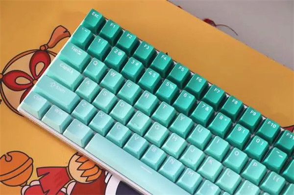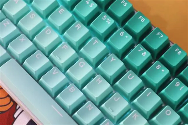 通过安装完成的效果来看,这套欧希德渐变键帽还是非常个性的,看惯了以前的键帽,这样的渐变色给人焕然一新的感觉,整体色彩渐变自然,很有“一套”个性法则。