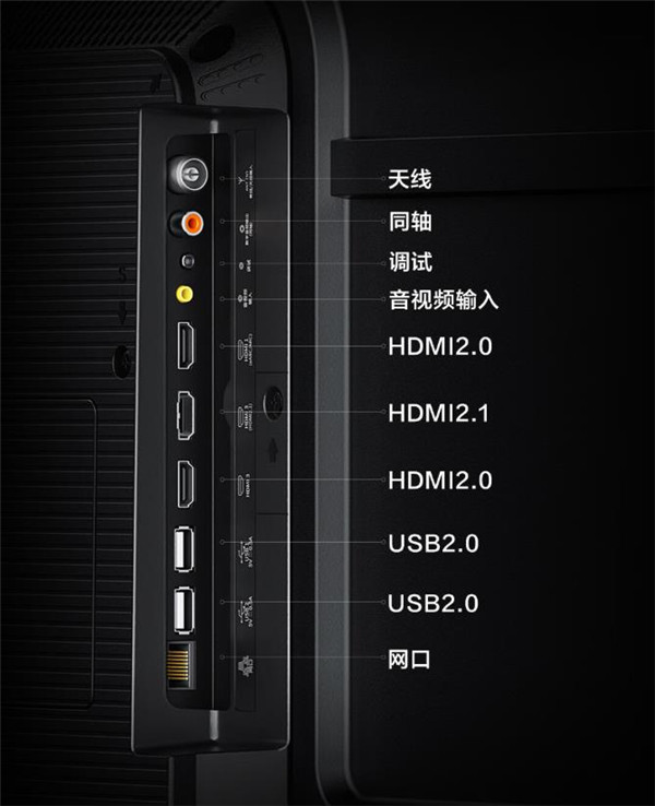 Vidda MUS的接口数量堪称丰富,包含天线、同轴、调试、音视频输入、HDMI2.0×2、HDMI2.1、USB×2和网口,日常用来接有线、音响、游戏主机和移动存储设备,就会比较方便。特别值得一提的是,HDMI2.1接口支持VRR(可变刷新率)和ALLM(自动低延迟模式),玩游戏的小伙伴应该知道的,这两项技术对于游戏流畅度的提升,是非常明显的。