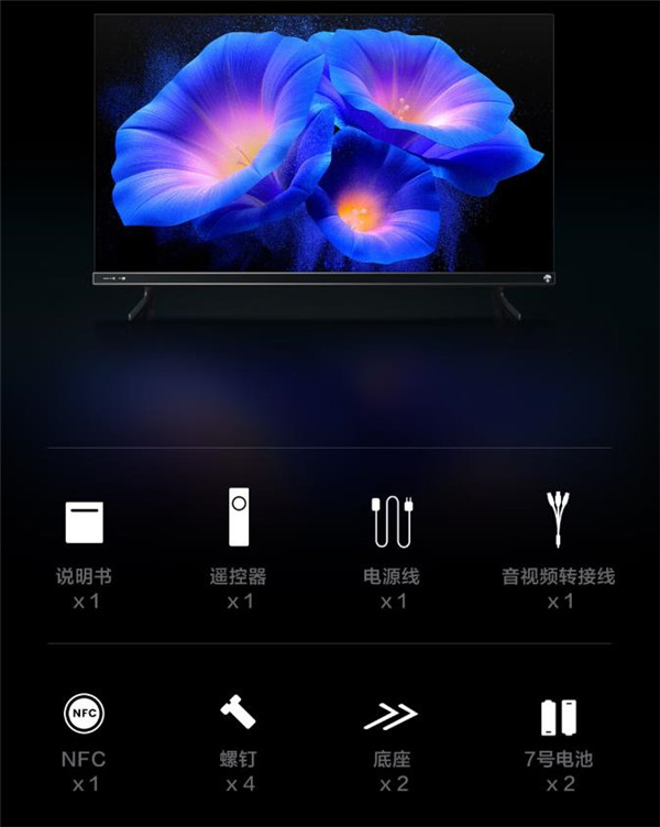 配件不多,除了电源线和音视频转接线外,就是遥控器、说明书和NFC贴纸(方便使用NFC功能时快速找到对应位置)。遥控器采用一对7号电池供电,我比较喜欢用“小聚键”,前面也提到了,搜人、搜穿搭什么的,会比较方便。