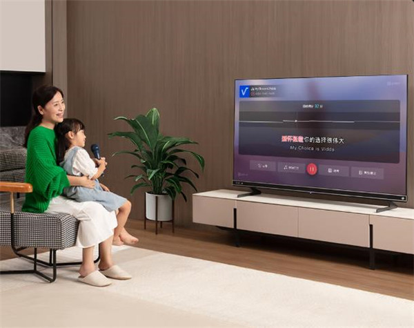 Vidda MUS支持远场语音,开启相关功能键后,喊一声“海信小聚”,电视就会响应你的指令。