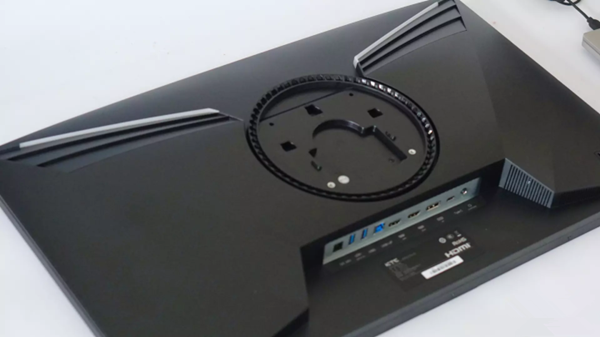 显示器背面两边像不像一对翅膀要振翅高飞,只是背面没有灯光的效果了,不过可以自己diy,弄成自己喜欢的颜色,弧形背板中央圆形区域内凹,方便安装底座支架。安装真的非常简单啦,对住卡扣就可以了。