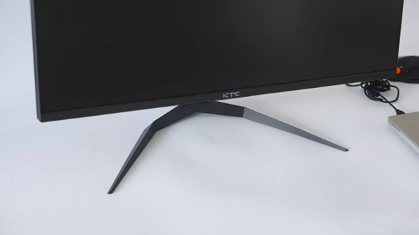 KTC M27T20S显示器采用三角形底座,支撑结构比较稳定,支架造型也很酷啊,满满的机甲风,支架上设有导线孔,可以将线材穿孔排列整齐;
