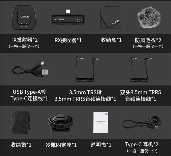 外包装方面洋葱工厂向来走的是简洁风格,洋葱工厂C1外观简洁朴素,突出实用性。主体部分囊括接收器、发射器及充电收纳盒。内部元件经过精挑细选,品质可靠耐用。