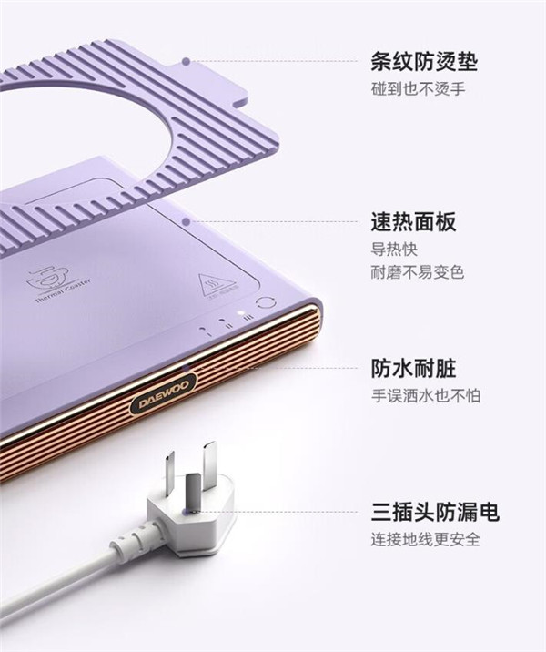 为了确保安全,加热垫还配备了一个条纹防烫的硅胶垫,在加热杯子时,可以将速热面板其他空间隔开,避免烫到手。