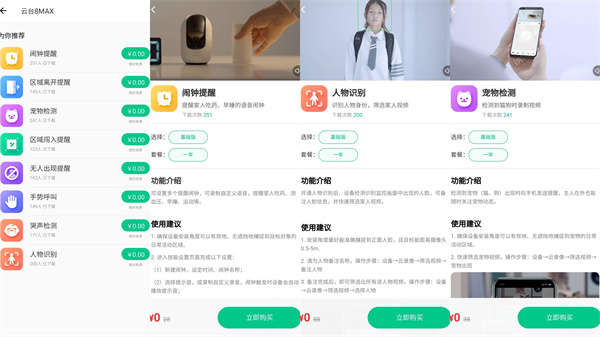 不同于传统家用监控摄像机,8 Max增加了技能商店功能,目前来说,技能商店所有技能都是免费的。