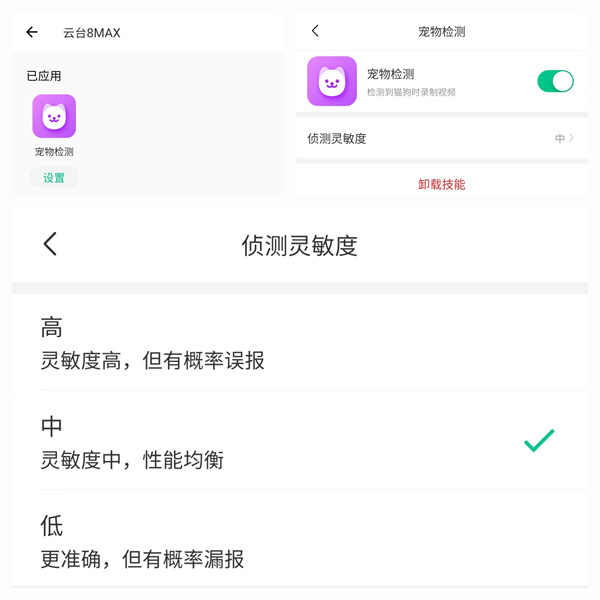 如果仔细看过前面几张图片的话,大佬们也许会发现,8 Max的部分技能还针对毛孩子做了优化。除去区域闯入、区域离开外,360还为毛孩子单独制作了宠物检测功能。