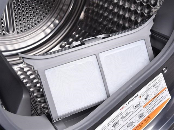 打开舱门我们可以看到内置的三重线屑过滤器,高密度双重收集 + 外部过滤器 + 内部过滤器的组合,能够快速吸附衣物上粘附的毛发线屑等杂质;