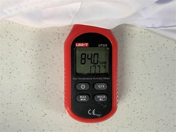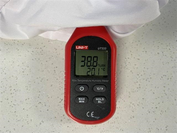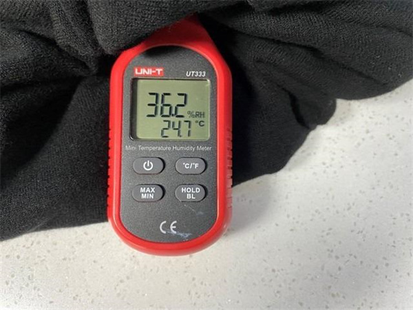 羊毛衣物烘干后湿度测试值:36.2%RH