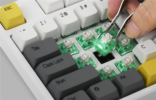 黑爵AK873还采用了热插拔轴座设计,用户可以使用配备的拔轴器自行更换轴体,带来更为个性化的体验。