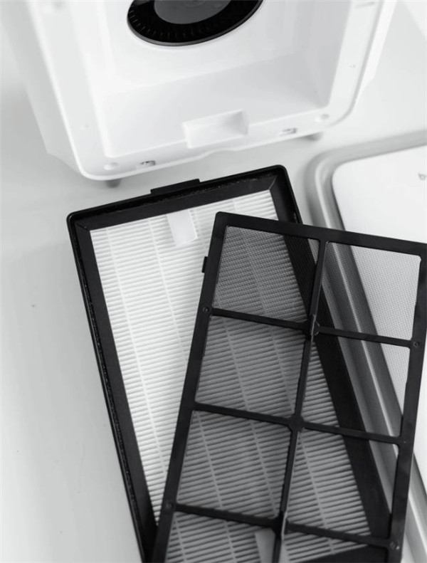 b-MOLA的滤芯滤网是分体式的设计,滤网是H13高等级的,能够过滤掉99.97%的颗粒物,可以吸附很细微的小分子颗粒:花粉、二手烟颗粒、灰尘等致敏原,滤网一年一换就行。加上独特的集中吸风口设计,它的吸力会比同等净化面积的空净要强很多,家里养了宠物的朋友就很适合用这一款。
