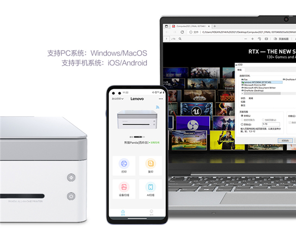 另外远程打印也是亮点。除了Lenovo Page打印App之外,手机端的“小新打印”App也可以支持远程打印。将联想小新熊猫Panda黑白激光智慧多功能一体机的二维码打印出来,用小新打印App扫描后可完成远程打印机的绑定。
