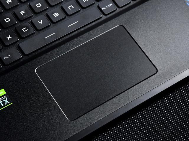 冲锋坦克Pro GP76 HX的触控板依旧不算大,但是做到了小而精致。四周以亮面抛光包边装饰,表面触感顺滑柔和,操控灵敏无延迟,熟悉之后即便不适用鼠标,也能实现高效精准的操控。