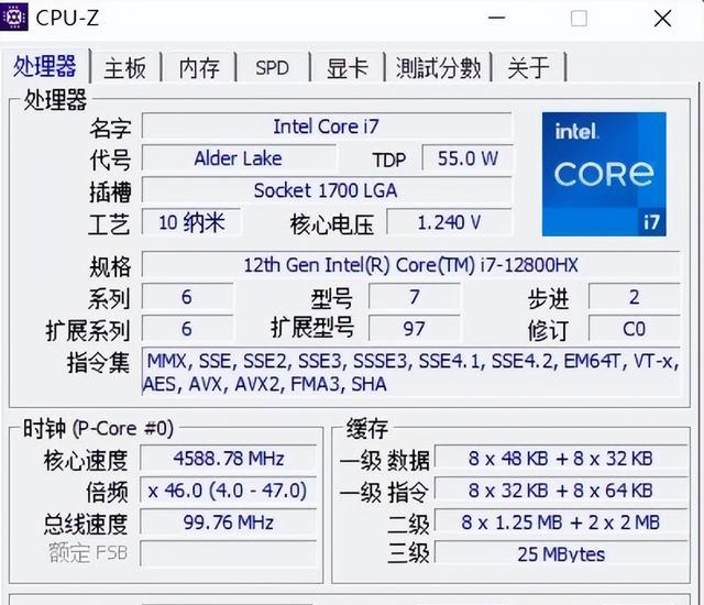酷睿i7-12800HX是目前英特尔移动级处理器中的次顶级,基于Intel 7制程工艺打造,拥有16核24线程,其中8个核心为性能核心(P-Core),8个核心为能效核心(E-Core)。性能核最高睿频4.8GHz,能效核最高睿频3.4GHz,三级缓存24MB,基础TDP为55W,TDP可调范围为45W-157W。