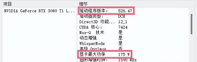 冲锋坦克Pro GP76 HX搭载了满血175W的RTX 3080Ti,测试前我们将驱动升级到最新的526.47版本,它拥有7424个CUDA核心,显存类型为GDDR6,显存容量为16GB,显存总线位宽256bit,带宽512GB/s,核心频率1230MHz,显存频率2000MHz,Boost频率1590MHz。