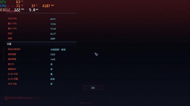 最后一款测试游戏为《赛博朋克2077》,这款游戏完美支持光线追踪,因此只有在高分辨率下开启光追特效,才能完全感受到这款游戏的魅力。而冲锋坦克Pro GP76 HX强悍的性能表现,自然能够给玩家带来这种完美体验。