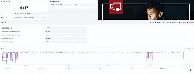 视频剪辑测试则会直接调用Premiere软件来进行,实测得分达到6687分。得益于i7-12800HX和RTX 3080Ti卓越的性能表现,冲锋坦克Pro GP76 HX也是一款视频剪辑利器,可以为重度视频剪辑任务带来极为出色的效率。