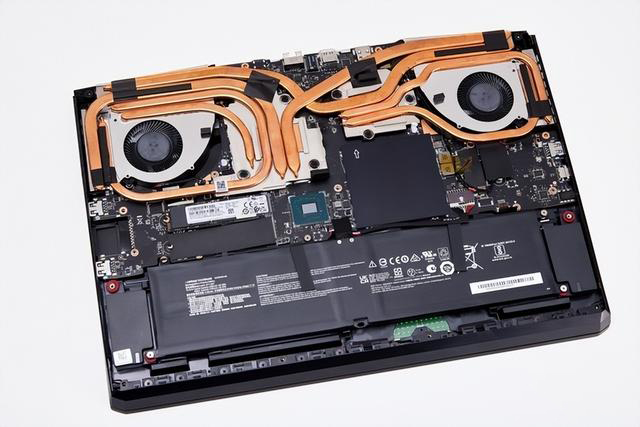 这款机器采用了Cooler Boost 5微星酷寒Pro散热系统,内置双风扇7热管。双风扇由2个104片高密度扇叶风扇构成,风压增强、噪音更低。7根超大腔体FrozenTube热管模组采用了快速导热线路排布,配合292片CoolingFin霜刃鳍片散热模组,可以有效提升导热效率。此外,微星还定制了导热硅脂,拥有超高导热效率与安全系数,确保核心硬件稳定运行。