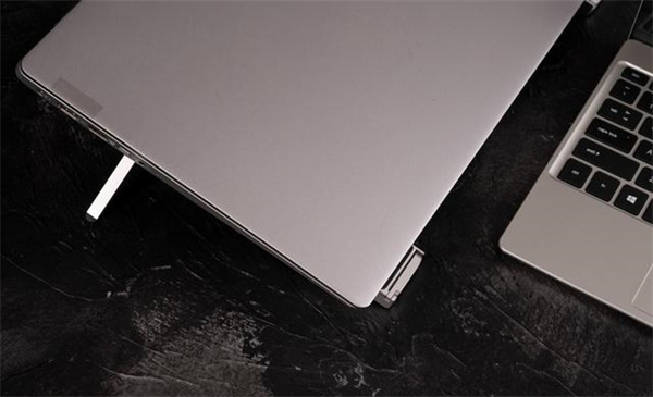 值得一提的是,支架展开后,中间是空着的,这恰好能够笔记本底部提供一个良好的散热环境。并且,支架的调节阻尼感十分出色,丝毫没有任何阻塞感,十分的丝滑顺畅。