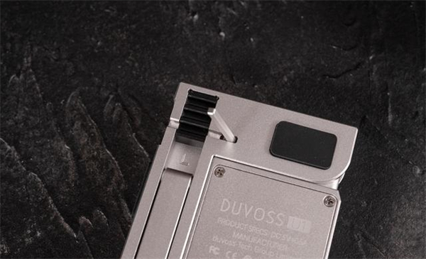 DUVOSS U1折叠支架音箱整体都采用了高强度的铝合金材质,采用CNC工艺加工而成,强度更为可靠,拿在手上相当的有分量。