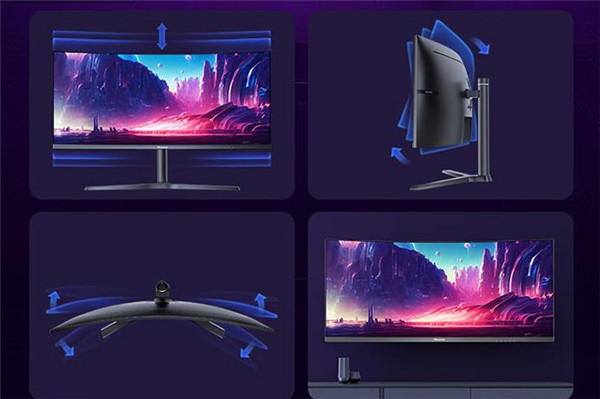 颜值较高,三边窄边框设计,比较沉稳,配Y型支架,支持VESA挂壁,注意无法垂直旋转(技术所有带鱼屏都无法垂直旋转)。