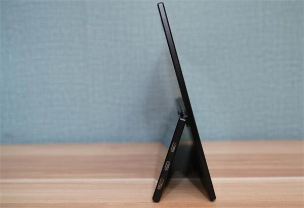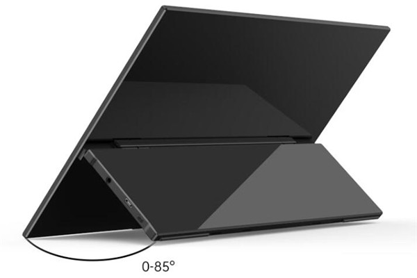 右侧集成了全功能双Type-C接口、Mini HDMI接口,其中Type-C接口不分输入和电源,而85°折叠也方便用户找到适合自己的使用角度,遗憾的是显示器不支持画面自动旋转。
