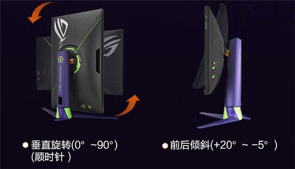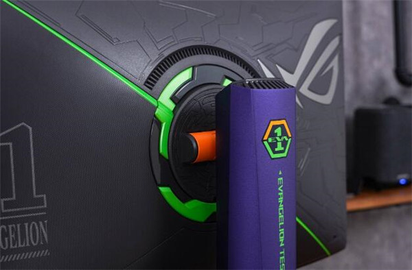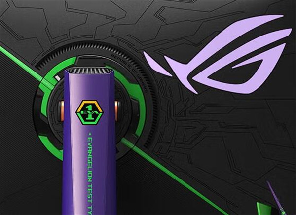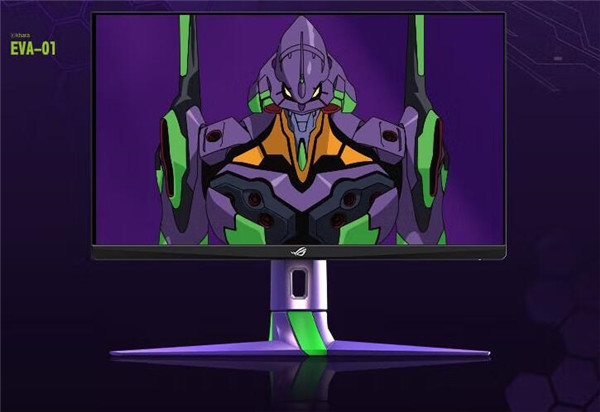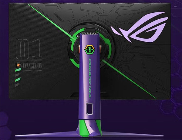 ROG EVA联名款电竞显示器的外型设计以EVA新世纪福音战士中极具人气的初号机为灵感原型,整体采用紫色与绿色的配色设计,充分体现了初号机的第一印象。