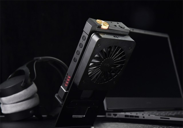 另外,Q7这次还附送了一个作为台放时搭配使用的散热底座,同样为金属材质,并采用单独Type-C接口供电,提供两档风扇散热调节。优点是可以快速给设备降温,缺点是开启风扇后会有噪声,对经常使用开放式耳机的用户可能不太友好,这点需要大家注意下。