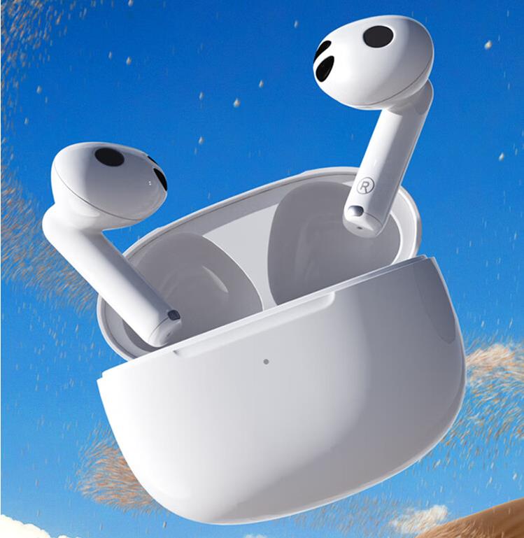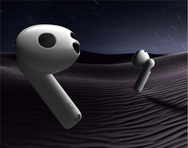 音腔壳体上有圆形泄压孔,可平衡内外压力,保持空气自由流通,提升耳机的声学性能;耳机柄内侧印有L/R标识。耳机柄底部是通话麦克风开孔。