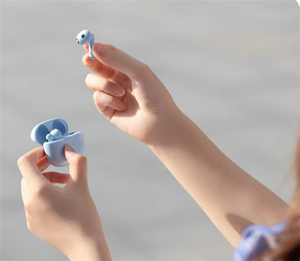 电盒内部、耳机本体与充电盒配色一致,都是低饱和度的马克龙色系,观感清新时尚。