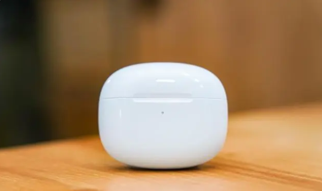 充电盒线条柔和,手感圆润,开盖处有凹槽,便于开启,下方有一颗指示灯,背面设有一颗配对按键,底部为Type-C充电接口。