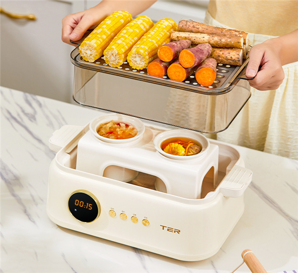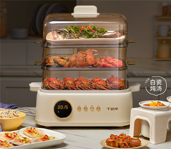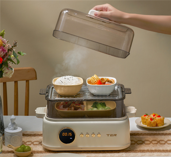 现在的健康生活,饮食要清淡健康,蒸是最好的烹饪方式;做一家三口的饭菜,蒸菜比炒菜要快手,省时又好吃;包子杂粮、炖汤、糖水,都要用到蒸锅、炖盅,所以电蒸锅是最好的选择。TER聚能鲜蒸锅T-ZG03有双层容量,还能上蒸下炖,一次性搞定全家人的早/午/晚三餐、宵夜,家里厨房根本离不开它。