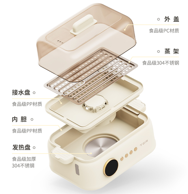 厨房电器产品最关心的还是入口的食物要安全。TER聚能鲜蒸锅T-ZG03,接触食物的材质都是用食品级别的SUS304不锈钢和PP材质,高温炖煮也不会有异味。