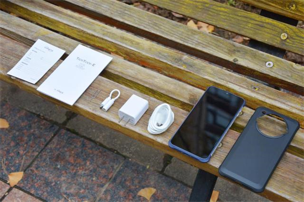 Unihertz TickTock-E外包装是纯白色包装盒,上面没有其它多余的设计,只有蓝色的“Unihertz”品牌Logo,让人印象深刻。打开外包装,里面有Unihertz TickTock-E手机,还提供有一个黑色保护壳、充电器、Type-C数据线、说明书、以及一根C口转3.5mm耳机音频口的转接线,配件提供的很丰富、很到位。