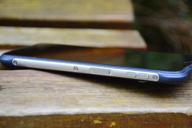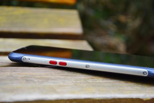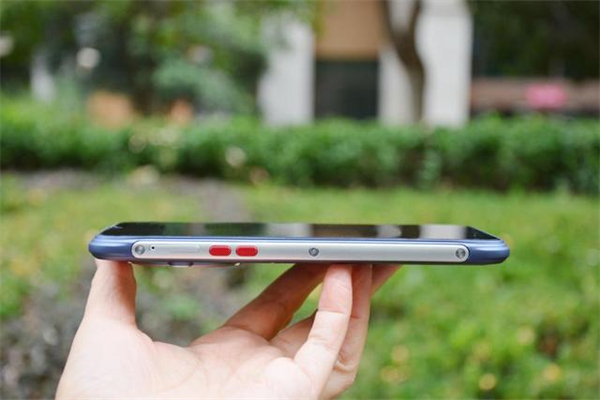 机身的右侧面,最上方两个椭圆形按键则是音量加减键,下方则是电源键。很明显它的电源键上也集成了指纹传感器,可以进行指纹识别解锁。