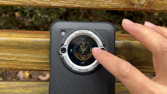 重点来看看Unihertz TickTock-E后背的副屏,它虽然只有小小的1.3英寸,但却是与众不同的亮点所在,尤其目前行业里加载前后双屏的手机并不多见,有也是大几千上万的高端旗舰,体验门槛极高。