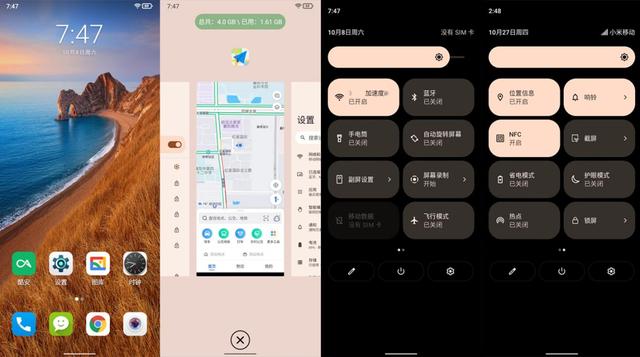 在控制中心里,可以看到它也是支持WiFi、热点、蓝牙连接,支持多功能NFC、省电、护眼模式、可以进行屏幕录制等,和常规智能机一样功能齐全。